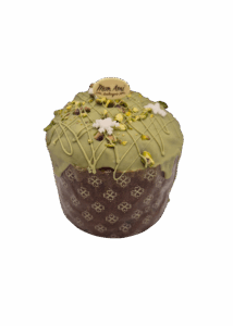 Spelta miltų pieniškos tešlos skanėstas su cinamonu ir saldžiarūgščia cukraus pudros kepurėle.