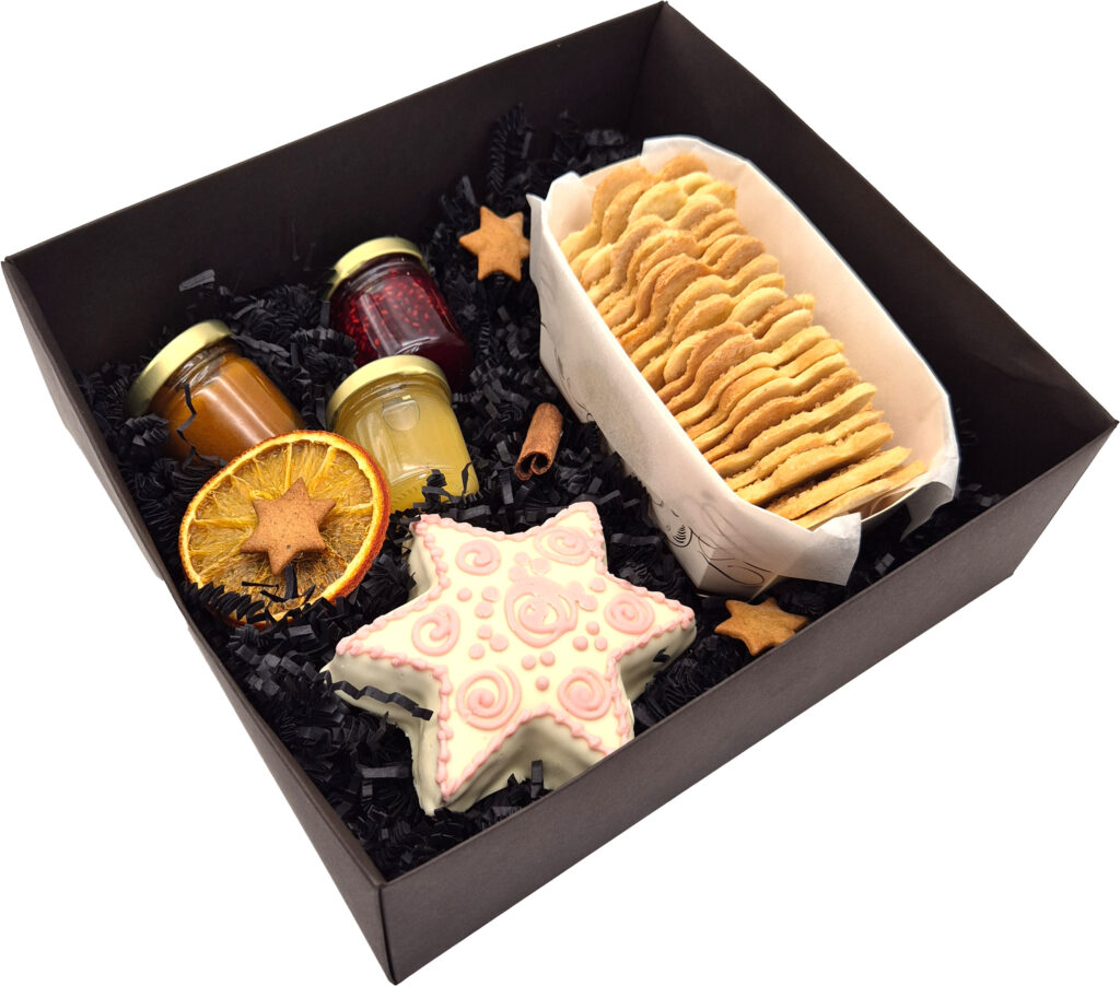 Šis dovanų rinkinys subalansuotas taip, kad vienoje dėžutėje suderintų kokybę ir šventišką jaukumą. Tai praktiška ir skani dovana, kuri pradžiugins kiekvieną. Į rinkinį įeina: Gardžioji „Mon Ami“ arbata: „Šildantis citrininis imbieras“ 40 ml „Aviečių ir spanguolių draugystė“ 40 ml „Šaltalankio džiaugsmas“ 40 ml Migdoliniai sausainiai 190 g Dekoruotas šventinis meduolis „Žvaigždė“